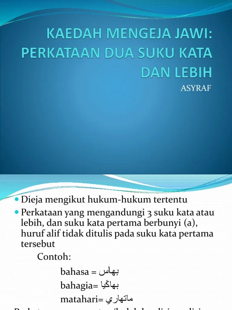 Perkataan Dua Suku Kata Dan Lebih Jawi : Kaedah Mengeja Jawi 1 2 Dan Lebih Suku Kata Pptx Kaedah Mengeja Jawi Perkataan Satu Suku Kata Perkataan Dua Suku Kata Dan Lebih Muhamad Danial Course Hero